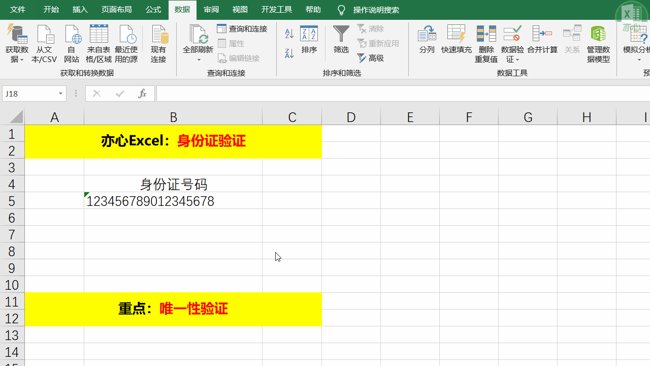 本文主要解决身份证号码在excel中的显示问题、长度问题、重复问题、合法问题。